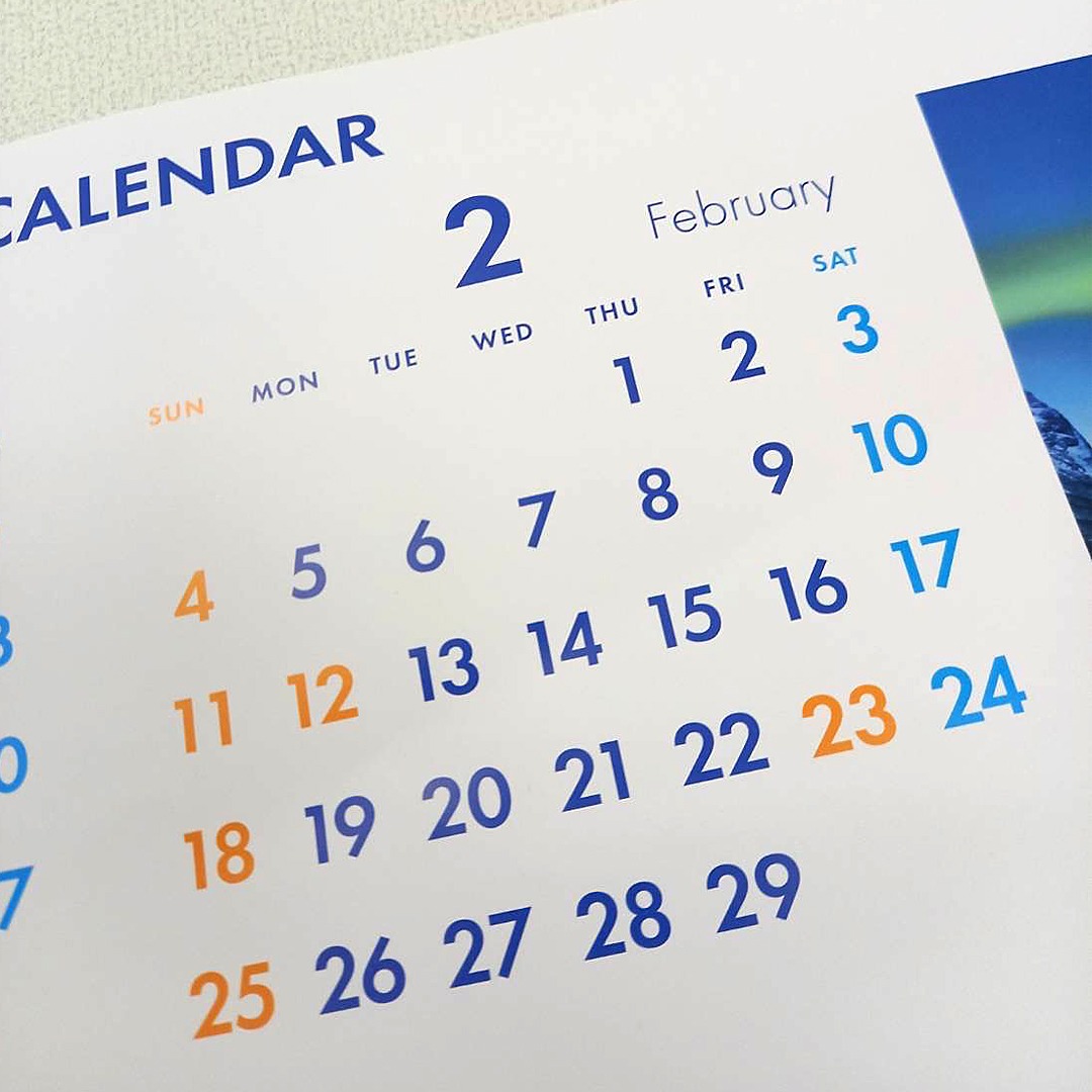 カレンダーをめくって気がつきました。今年の2月は3連休が2回そして閏年(うるう年)なので29日まで、、、